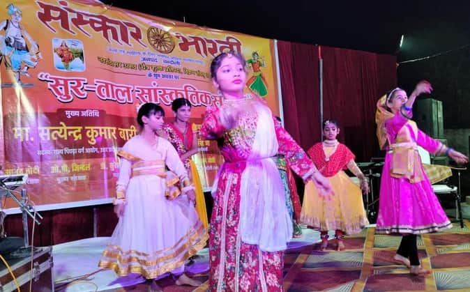पीडीडीयू नगर में संस्कार भारती के कार्यक्रम में सांस्कृतिक कार्यक्रम प्रस्तुत करतीं छात्राएं। स