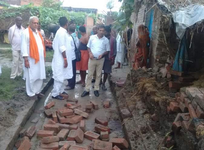 वहीं महुजी गांव में धीरेन्द्र वर्मा और मंगरू पासवान का खपरैल का मकान बारिश के बीच दोपहर दो बजे गिर गया। इससे गृहस्थी का पूरा सामान नष्ट हो गया। यह संयोग ही था कि घर के बाहर खेल रहे थे, इससे उनकी जान बच गई। इस घटना से दोनों परिवार के लोग खुले आसमान के नीचे आ गए हैं।