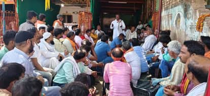 पीडीडीयू नगर में सब्जी व्यवसायियों की बैठक में बोलते अध्यक्ष नारायण सोनकर। स्रोत:-जागरूक पाठक