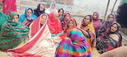 चहनियां के कैथी के भगवानपुर में आनंद यादव की मौत के बाद रोते बिलखते परिवार के लोग। स्रोत:-जागरू