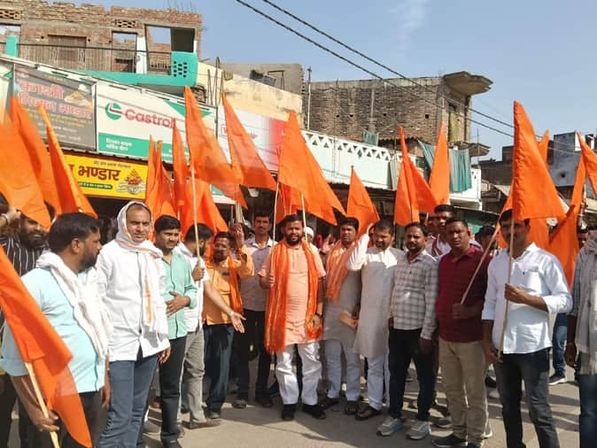 Chandauli News: हिंदू नववर्ष को भव्य तरीके से मनाने के लिए बांटे भगवा झंडे