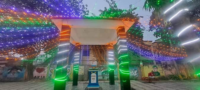 चकिया में आकर्षक झालरों से सजा गांधी पार्क। संवाद