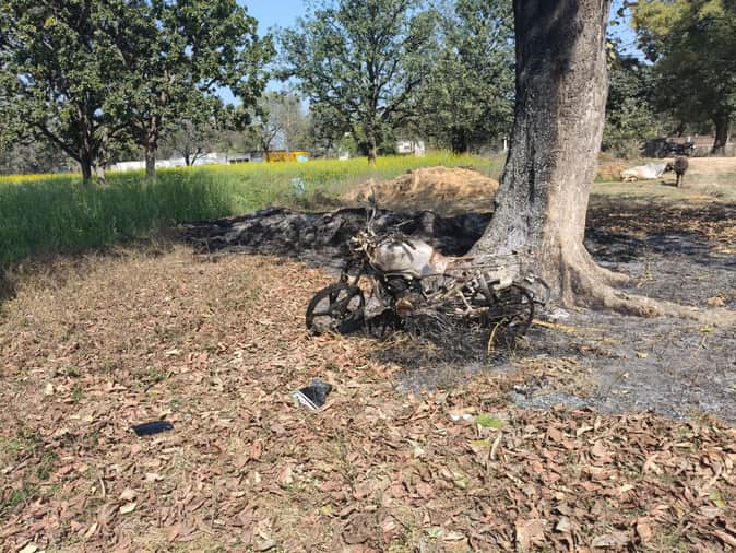 08 सीकेटीपी01-आरोपी की जली हुई बाइक। संवाद
