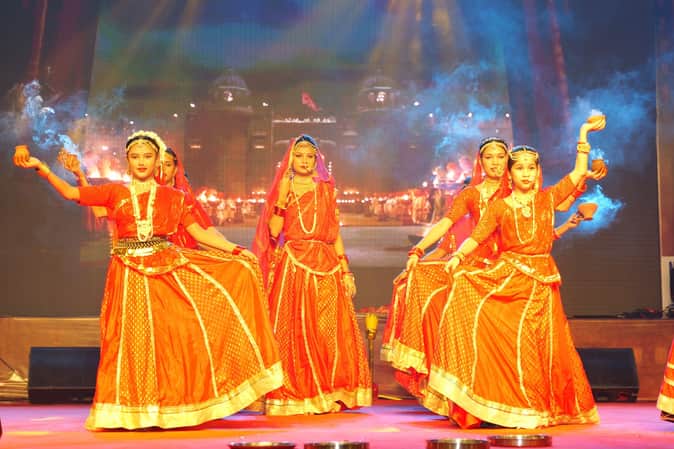 28 सीकेटीपी-6- परिचय- खजुराहो फिल्म फेस्टिवल में मंच से बुंदेली गीत संगीत प्रस्तुत करतीं कलाकार