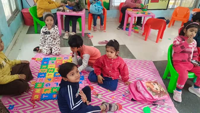 फोटो 31सीकेटीपी 11 आंगनबाड़ी केंद्र के प्री क्लॉस में बच्चों के संग बैठी डीएम की बेटी सिया। संव