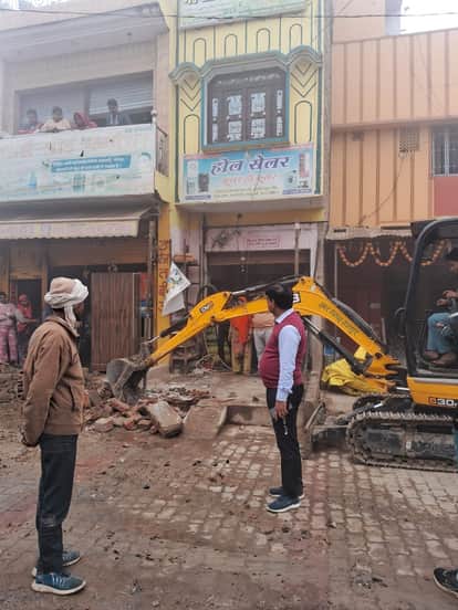 राजापुर, चित्रकूट। कस्बे में रविवार को प्रमुख सड़कों सहित गलियों में अतिक्रमण हटाओ अभियान चलाया गया। जेसीबी से फुटपाथ पर बने घरों व दुकानों के बने चबूतरे व सीढ़ियों सहित दीवारों को हटाया गया। इससे अतिक्रमणकारियों में अफरा तफरी मची रही । कुछ दुकानदारों ने इसका विरोध भी किया।