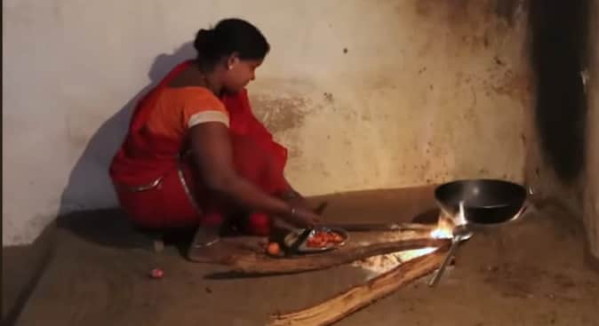 घर की छत पर चूल्हा बनाकर पका रहीं खाना