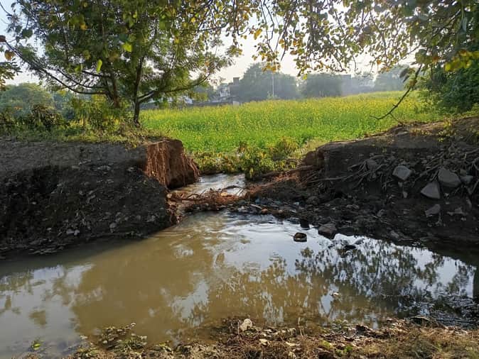 12 सीकेटीपी-14- परिचय-राजापुर क्षेत्र में कटी नहर से खेतों में भर रहा पानी। संवाद