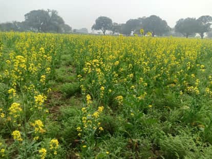 फोटो- 06 खेत में खड़ी सरसों की फसल। संवाद