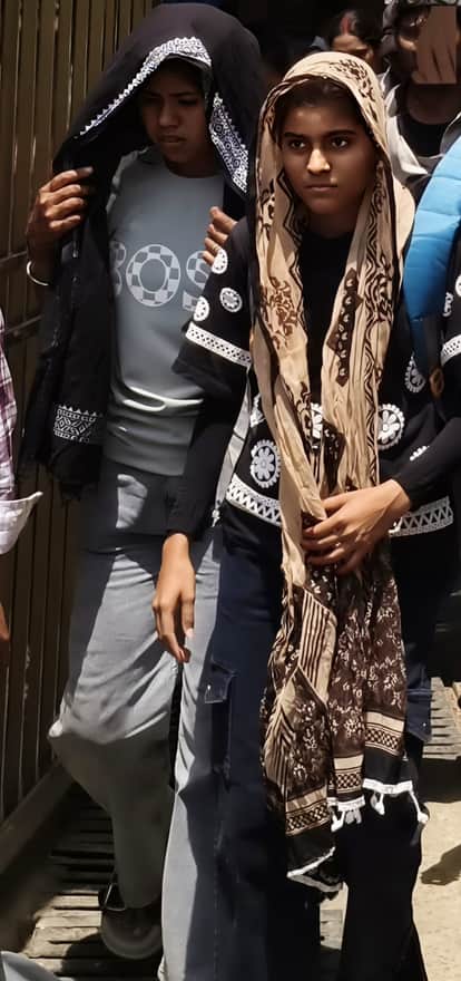 फोटो 27 सीकेटीपी-14- धूप से बचने के लिए सिर को कपड़े से ढककर जाते युवा। संवाद- फोटो : सड़क हादसे के बाद जलता डीसीएम व ट्रेलर।