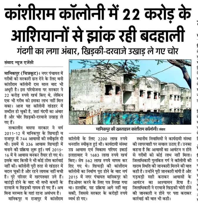 Chitrakoot News: कांशीराम आवासों की बदहाली पर हरकत में आया प्रशासन