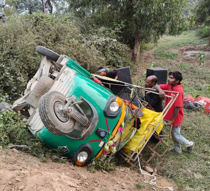 Chitrakoot News: बस से बचने के चक्कर में अनियंत्रित ऑटो पलटा, आठ घायल