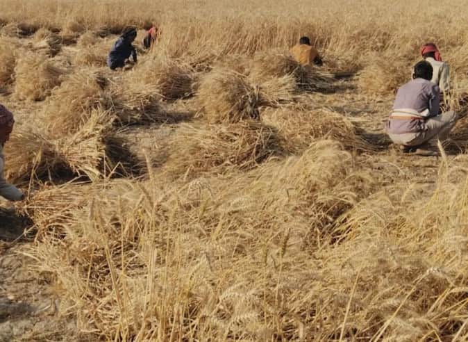 फोटो 06सीकेटीपी 22 अशोह गांव में खेत में गेहूं फसल काटते किसान। संवाद