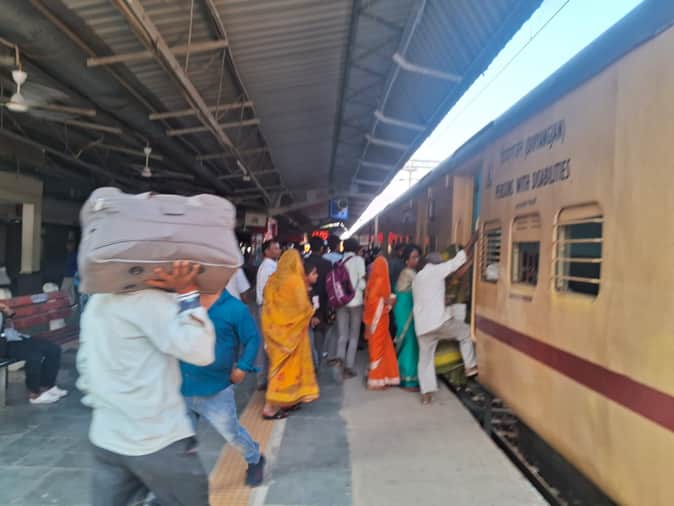 बरहजिया ट्रेन में चढ़ते यात्री।