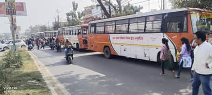 शुक्रवार को ओवरब्रिज के पास हरैया वार्ड की सड़क पर अनुबंधित बसों को खड़ा कर चालक सवारी भर रहे थे। इसके चलते जाम की स्थिति बन गई। जाम की जानकारी मिलने पर कोतवाल महेंद्र कुमार चतुर्वेदी मौके पर पहुंचे और वहां अवैध रूप से खड़ी पांच बसों को कोतवाली लेकर चले आए। कागजी कार्रवाई के बाद सभी बसों का ई-चालान काटा गया।