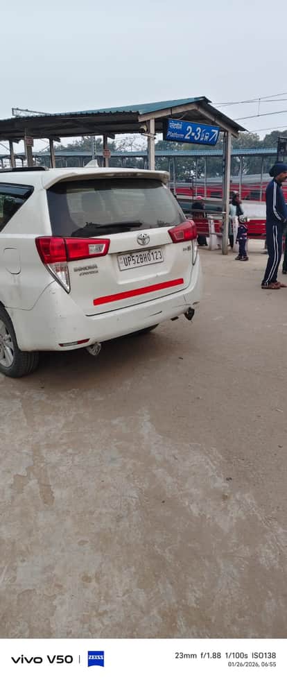देवरिया सदर रेलवे स्टेशन के प्लेटफार्म नंबर एक पर चढ़ी लक्जरी कार