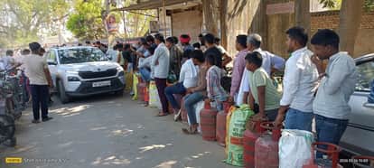 गैस एजेंसी पर लगी कतार।
