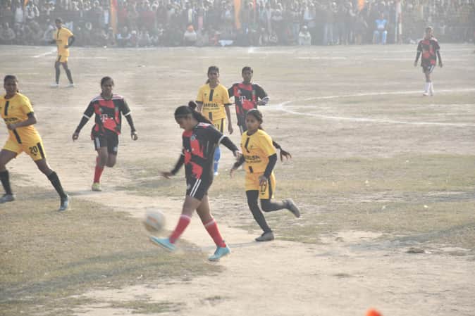 मुख्य अतिथि भाजपा नेता नीरज वर्मा व विशिष्ट अतिथि राधेश्याम राय ने खिलाड़ियों से परिचय प्राप्त कर खेल का शुभारंभ कराया। मैच के पहले हाफ में दोनों टीमों ने आक्रामक खेल का प्रदर्शन किया। प्रथम हॉफ के 19वें मिनट में पटना की खिलाड़ी पायल सिरदौस ने शानदार खेल का परिचय देते हुए टीम को बढ़त दिलाई। आउटर एरिया से मिले गेंद को पहले हैडर से नियंत्रित करने के बाद उन्होंने सटीक मैदानी शॉट लगाया, जो सीधे गोलपोस्ट में जा पहुंचा। इस गोल के साथ पटना की टीम ने 1-0 की निर्णायक बढ़त बना ली।