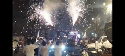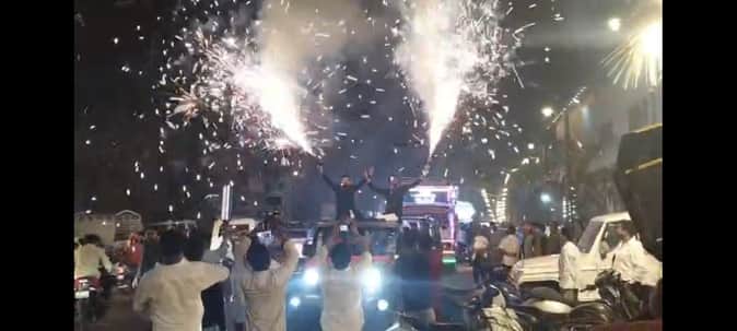 बारात में गाड़ी पर चढ़कर रुपये लुटाते और आतिशबाजी करते युवक