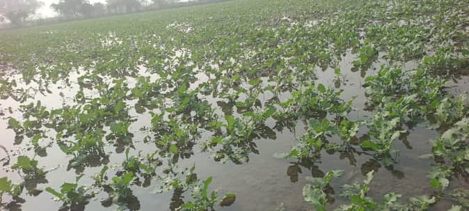 जलेसर क्षेत्र के नगला रेजुआ में सरसों के खेत में भरा पानी। संवाद