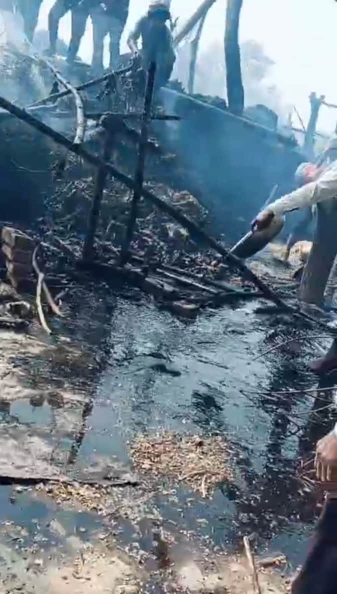 अलीगंज क्षेत्र के गांव भरापुरा में तंबाकू के बंडल में आग लगने के बाद पड़ी राख। संवाद