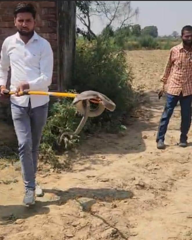 Etah News: पांच मीटर लंबे कोबरा को वन विभाग की टीम ने पकड़ा
