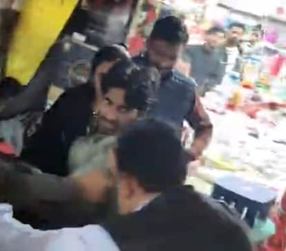 जलेसर में चल रहे उर्स मेले में दंपती को पीटते दरगाह कमेटी के पदाधिकारी। स्रोत वीडियो ग्रेव