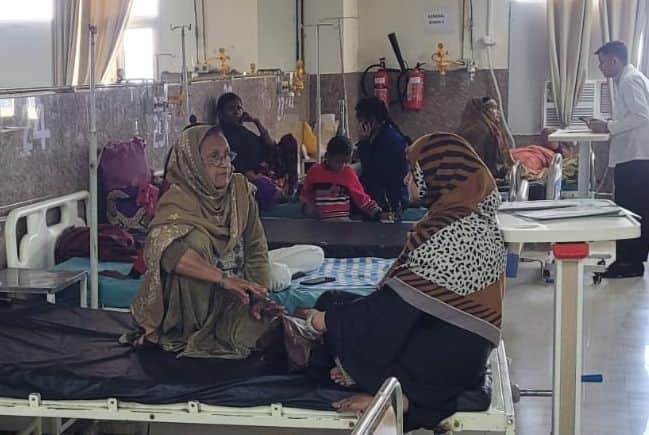 मेडिकल कॉलेज के बच्चा वार्ड में भर्ती बीमार बच्चे व उनकी देखरेख में बैठे परिजन। संवाद