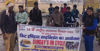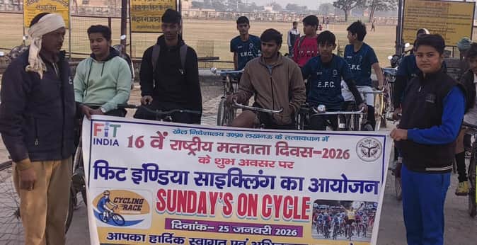 एटा। राष्ट्रीय मतदाता दिवस पर मतदाताओं को जागरूक करने के उद्देश्य से रविवार को फिट इंडिया साइकिलिंग प्रतियोगिता का आयोजन किया गया। इसमें सरस्वती विद्या मंदिर सीनियर सेकेंडरी स्कूल के रजत ने पहला स्थान हासिल किया।