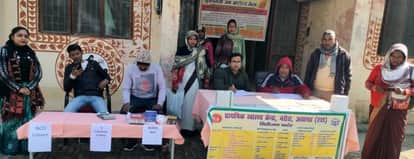 प्राथमिक स्वास्थ्य केंद्र नरौरा पर आयोजित जनआरोग्य मेला में मौजूद चिकित्सक व मरीज। स्रोत स्वास्