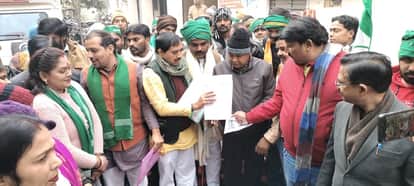 रेलवे रोड स्थित बिजली विभाग कार्यालय पर अधीक्षण अभियंता को ज्ञापन सौंपते भाकियू भानू के पदा- फोटो : जगदीशपुर विधायक सुरेश पासी।