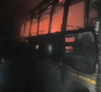 Etah News: एटा में रोडवेज वर्कशॉप में खड़ी बस में लगी आग