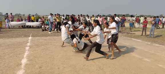 कबड्डी प्रतियोगिता के दौरान खेलती बालिकाएं। स्रोत खेल विभाग