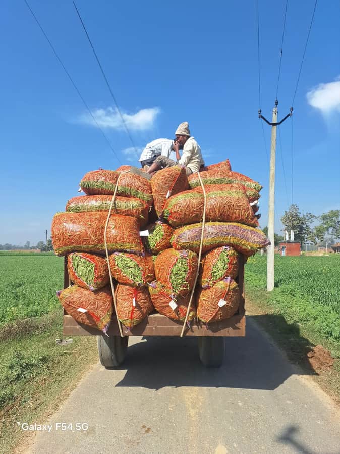 कस्बा मिरहची में खेतों से ट्रैक्टर में मटर लादकर मंडी ले जाते किसान। संवाद