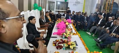 कलेक्ट्रेट बार एसोसिएशन में शपथ ग्रहण समारोह में बोलते जिला न्यायाधीश दिनेश चंद। संवाद