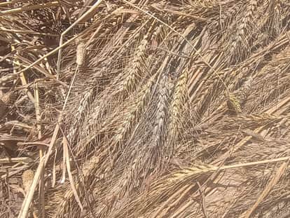 जलेसर में मंगलवार का हुई बारिश से भीगने से काली पड़ी गेहूं की बाली। संवाद