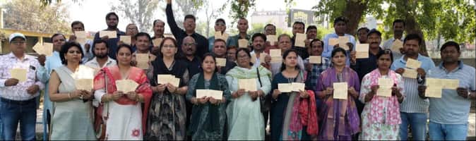 टीईटी की अनिवार्यता के विरोध में पोस्टकार्ड भेजकर विरोध करते शिक्षक। स्रोत शिक्षक