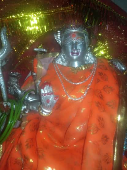 सकरौली के गांव नगला झडू बलिदादपुर के मंदिर में रखी दुर्गे मां की अष्टधातु की मूर्ति जो चोरी हो