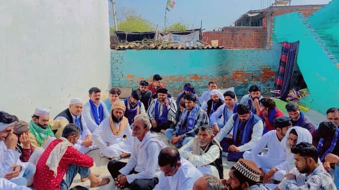 मकसूदपुर गांव में पिता पुत्र की मौत के बाद घर पर बैठे लोग। । संवाद