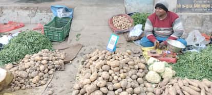 शहर के रेलवे रोड पर फुटकर में आलू बेचता दुकानदार। संवाद