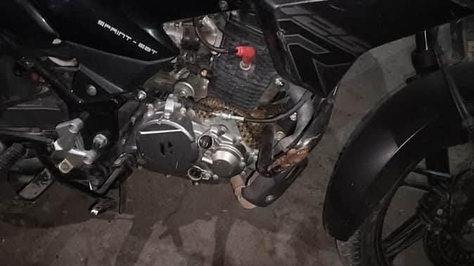 कस्बा सकीट के मोहल्ला चक में खड़ी बाइक में घुसा सर्प। संवाद