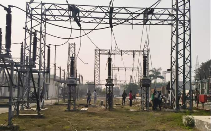उपकेंद्र गंगनपुर पर मरम्मत का कार्य होता हुआ। स्रोत विद्युत निगम