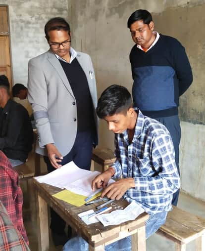 परीक्षा केंद्र पर निरीक्षण करते जिला विद्यालय निरीक्षक डॉ. इंद्रजीत सिंह। स्रोत जिला विद्यालय न
