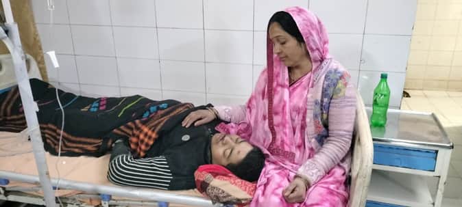 शहर के मेडिकल कॉलेज की इंमरजेसी में सुमित चौहान का होता उपचार। संवाद