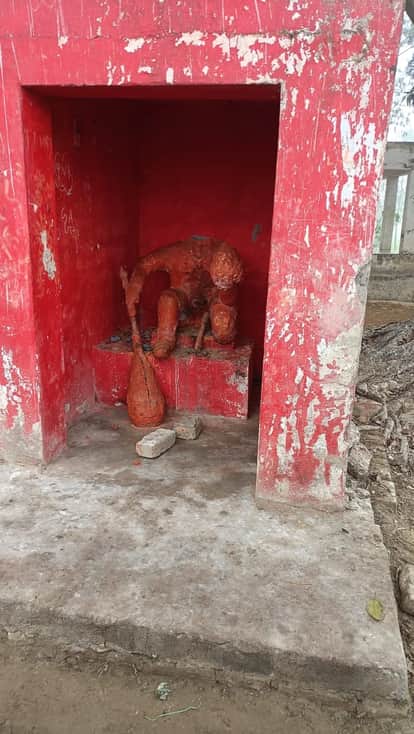 पिलखतरा में अराजक तत्वों द्वारा खंडित की गई मूर्ति। संवाद
