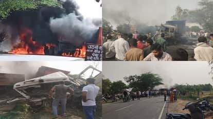 टूंडला-एटा रोड पर भीषण हादसा: आमने-सामने से दो भिड़े डंपर, दोनों चालकों की जिंदा जलकर मौत; हाईवे पर लगा जाम