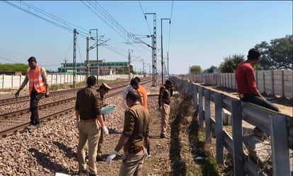 फोटो 18::: भरथना रेलवे स्टेशन के पूर्वी आउटर पर घटनास्थल पर जांच करती पुलिस व रेलकर्मी। संवाद