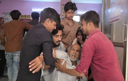 फोटो-11 सीएचसी में बेटे की मौत से दुखी पिता को संभालते लोग। संवाद