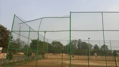 फोटो-13, स्टेडियम के बॉलीवाल कोर्ट की टूटी जाली। संवाद