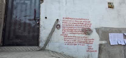 फोटो-24 कायमगंज में जुबैर के घर की दीवार पर लिखी गई सूचना। संवाद